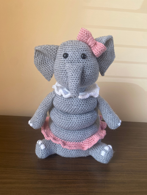 With this written crochet pattern you will be able to make your very own elephant ring stacking toy, perfect for that toddler in your life.