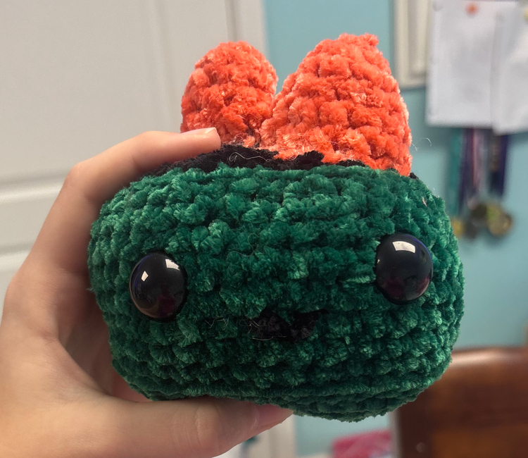 Pink Petal Crochet designed the Emotional Support Dumpster Fire pattern. Find more of their patterns on their Ribblr shop page.
