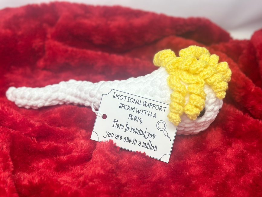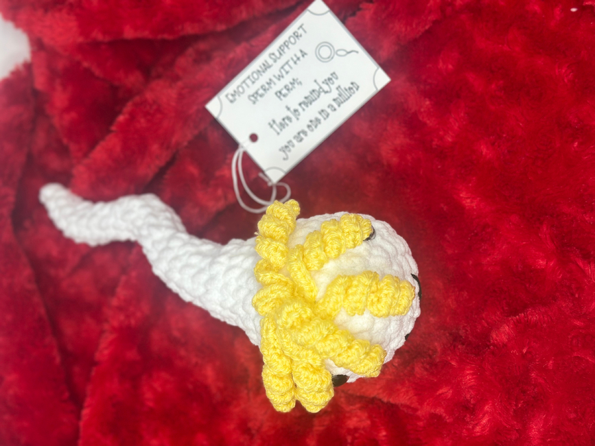Crochet your own plushie Emotional Support Sperm with a Perm