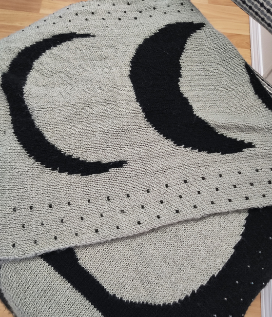 Esmeray is an Intermediate Knitting pattern designed by .KnitterUp by Duckysnstuff. for making an Accessories. Esmeray is a double knit/reversible wrap featuring the phases of the moon. Knit in fingering weight yarn, it is light and flowy and and will keep you warm on cool summer evenings.