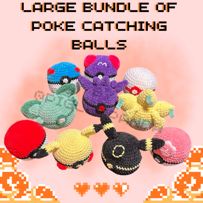 Extra large bundle of 10 catching balls is an Intermediate Crochet pattern designed by Crafty_Piglet for making an Amigurumi. in this bundle you'll learn how to make the love ballpremiergreat ballbasic ballmaster ballpikachu ballgengar ballsprigatito ballsprigatito ballumbreon ball!