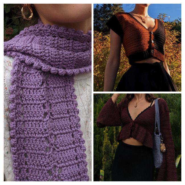 This bundle includes my favorite fall pattern that you can make to look stylish throughout the colder months of the year my Lara top, my Claire cardigan and my lavender haze scarf pattern are all super easy and beginner friendly