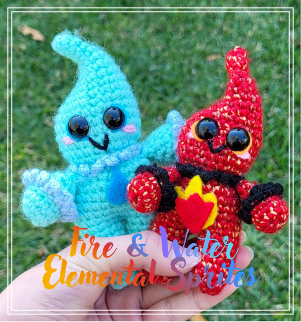 Fire and Water Elemental Sprites is an Intermediate Crochet pattern designed by For the Love of Yarn for making an Amigurumi. Meet Char and Aqua, the fire and water Elemental SpritesThis pattern includes clear, step-by-step instructions DO NOT resell, redistribute, or copy this pattern in any way