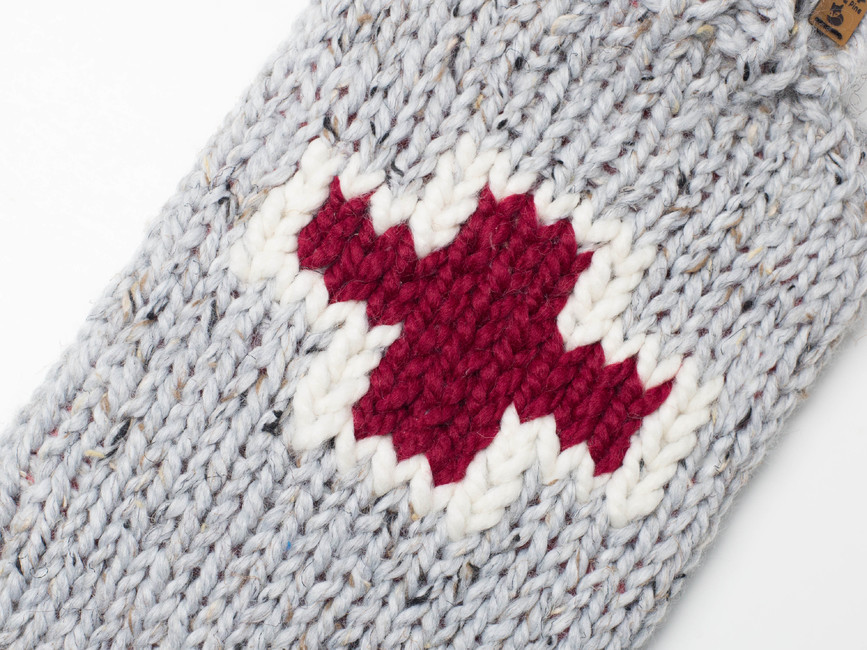 The cover is knit in the round. The heart is stitched on afterwards using Duplicate Stitch.