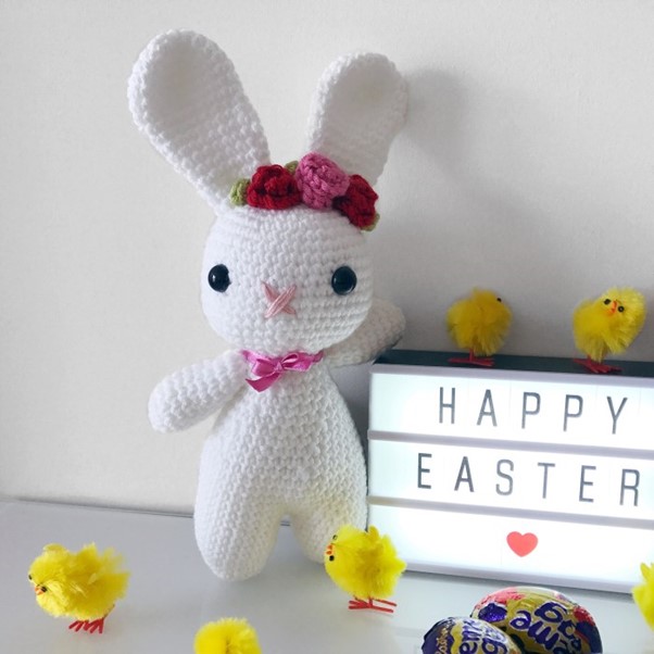DK weight yarn in Purple or any colour (approx 100g) DK weight yarn in green (small quantity) DK weight yarn in yellow (small quantity) DK weight yarn in white (small quantity) Chunky white or cream yarn for tail