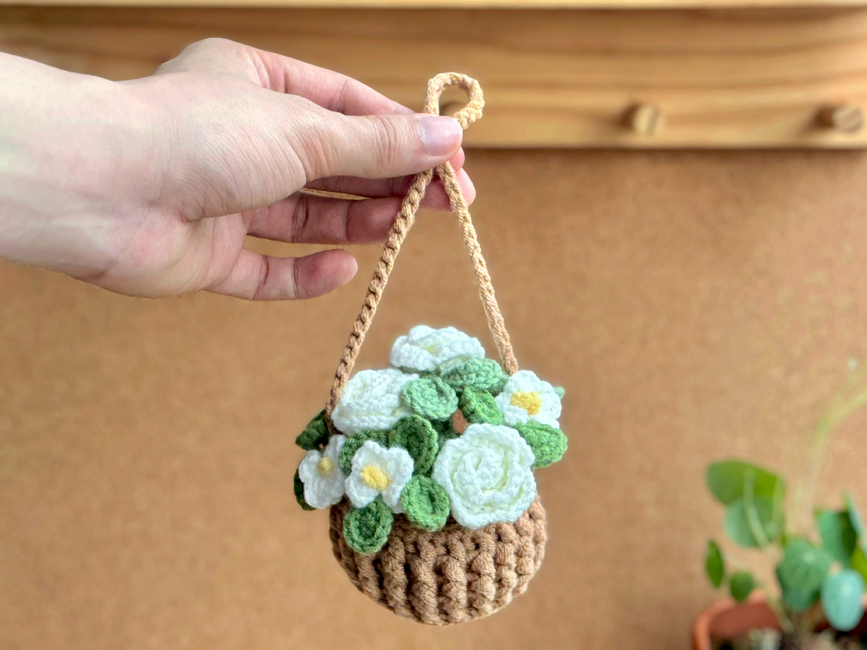 click to see White Rose Flower Basket Mix Crochet Pattern, Plant Crochet Pattern, Hanging Plant Pattern, Flower Basket Hanging Crochet