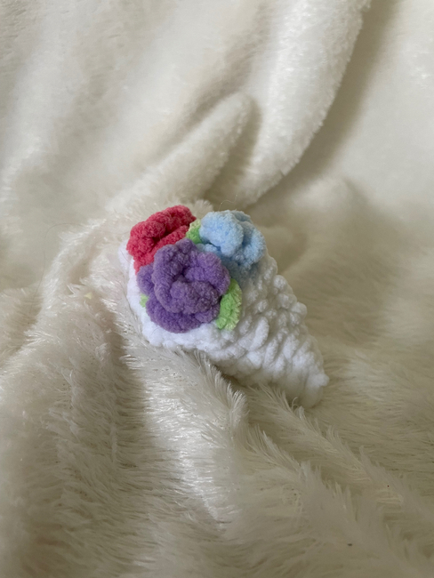 I used big twist posh, White for the bouquet wrap; pink, blue, and purple for the flowers; and green for the leaf accents