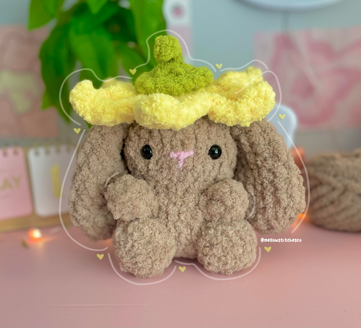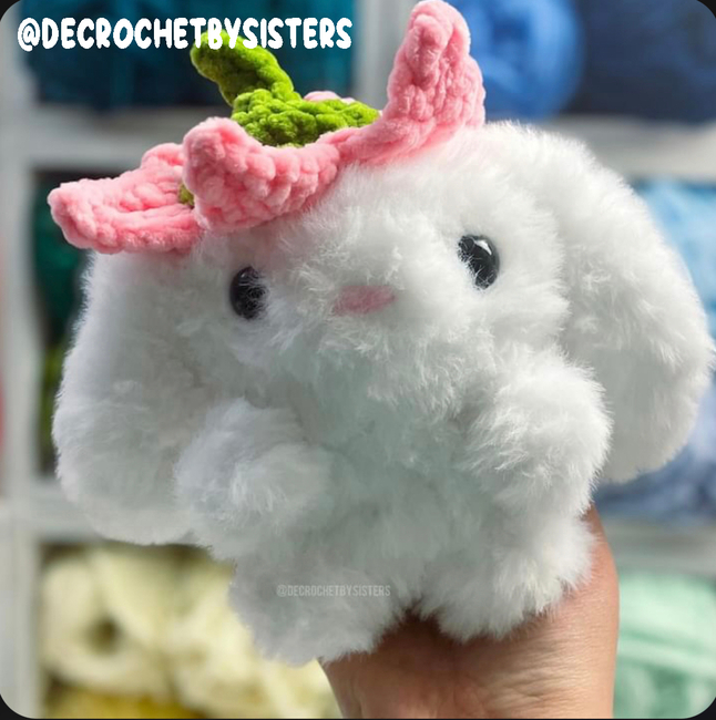 This pattern is an beginner-intermediate-level crochet pattern to crochet a flower bunny!