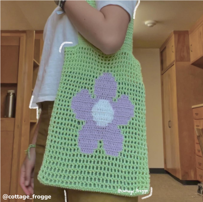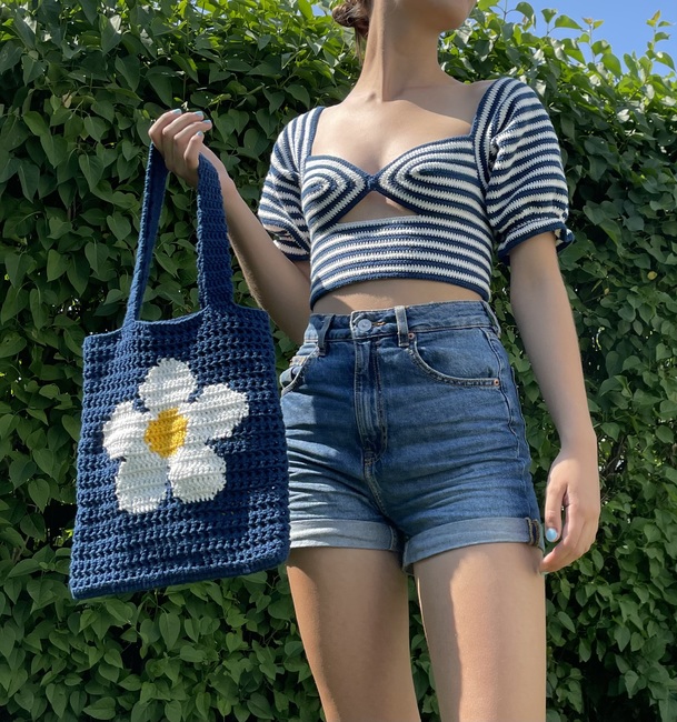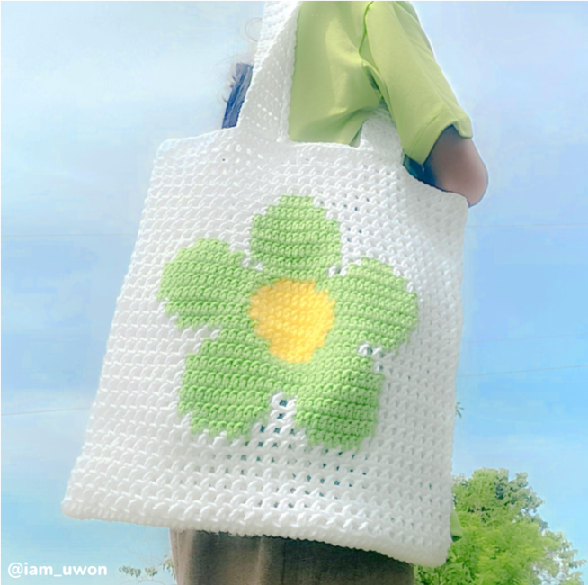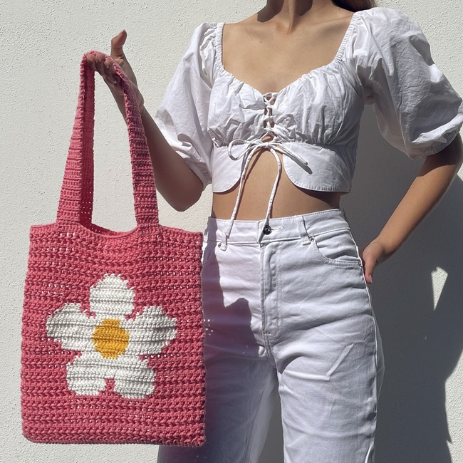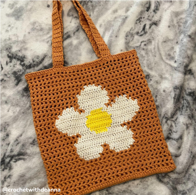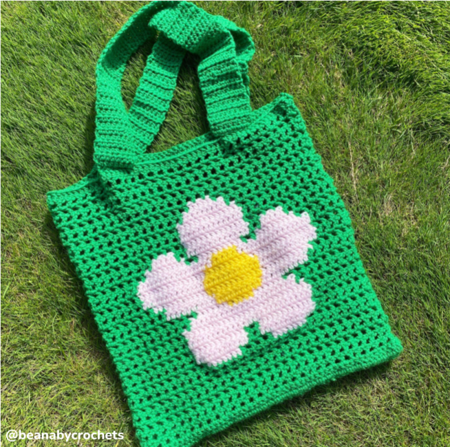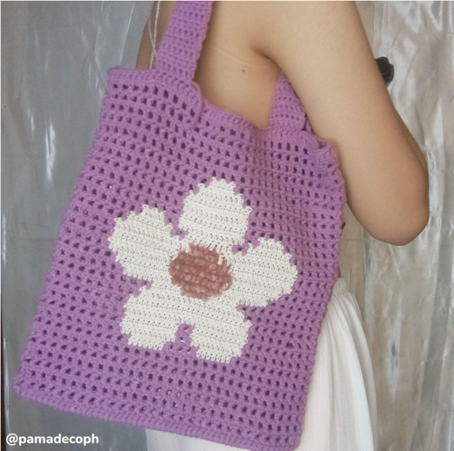 Flower market bag, filet and tapestry net tote crochet pattern by Crocheigh