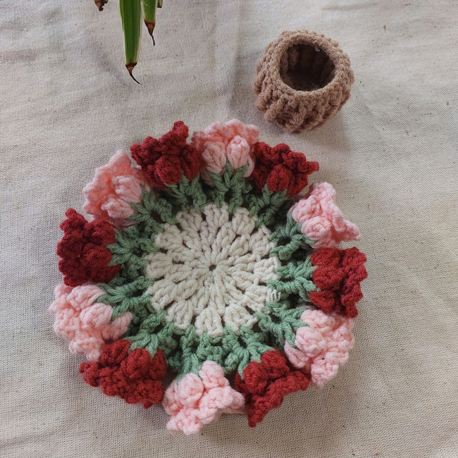 This crochet coaster set is a thoughtful handmade gift for friends and family, ideal as a housewarming gift, a Christmas decoration, or a cute addition to any table decor. Use it to protect surfaces while showcasing your love for crochet. Each crochet flower brings a cozy and personalized touch, making this project both practical and decorative.