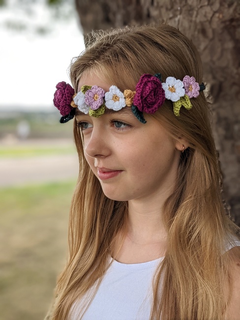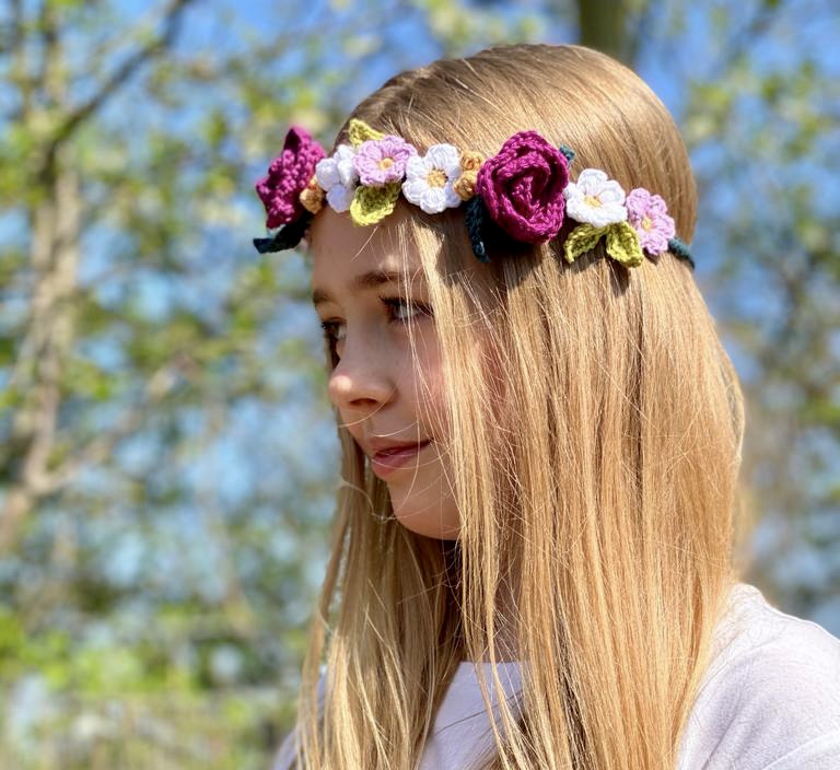 A tutorial crochet pattern for a flower crown that is fast and easy to make.