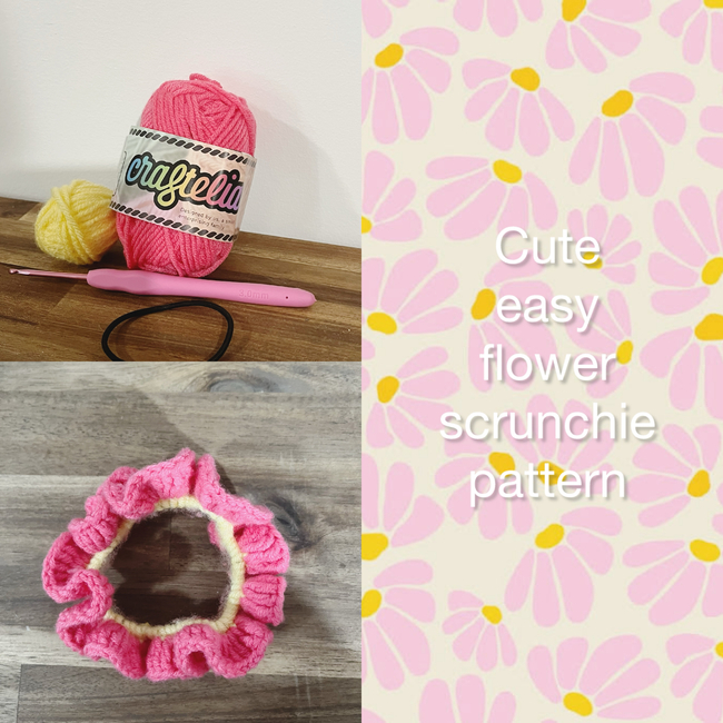 crochetbygwendalynn designed the Flower scrunchie pattern. Find more of their patterns on their Ribblr shop page.
