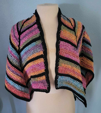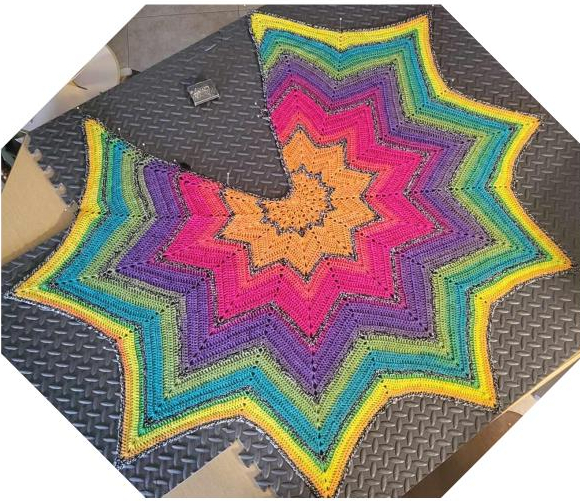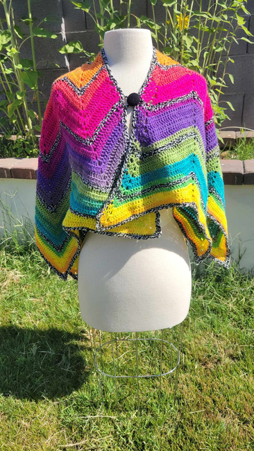 This Flower & SpiderWeb Shawl is a colorful wrap around shawl in flower or spiderweb design. It can be worn as a neck shawl, wrap, or coverup. It's perfect to wrap around yourself on those chilly winter days or when you need some extra warmth. The shawl is made of 1 mandala bonus roll or 4 skeins of I Love this Yarn. It measures 53 inches point to point.