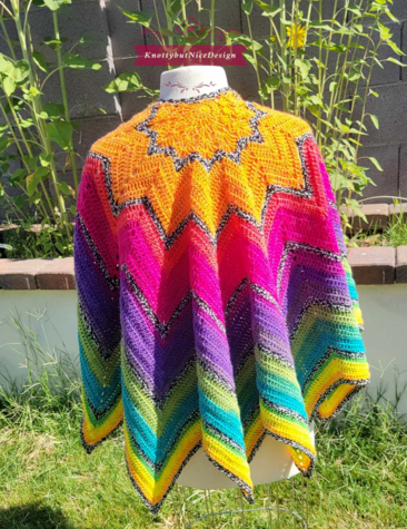 Flower & SpiderWeb Crochet Shawl is a Beginner Crochet pattern designed by Knotty But Nice Design for making a Clothing. This Flower & SpiderWeb Shawl is a colorful wrap around shawl in flower or spiderweb design. It can be worn as a neck shawl, wrap, or coverup. It's perfect to wrap around yourself on those chilly winter days or when you need some extra warmth. The...