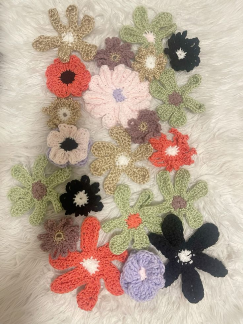 these flowers are versatile & can be used for a variety of projects such as a crochet flower wall, other decor, accessories, or adding detail to other pieces.