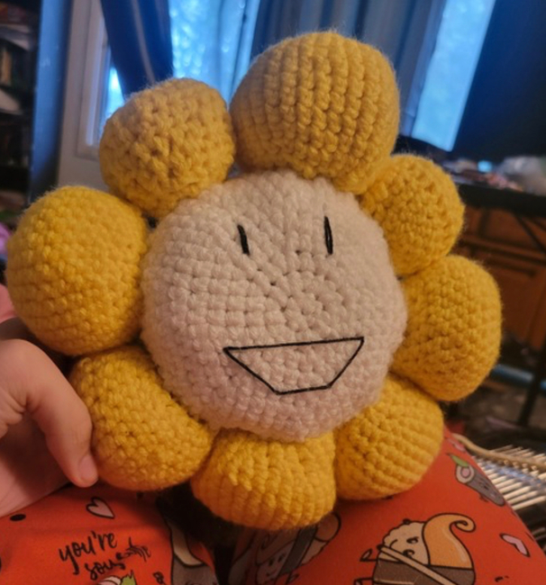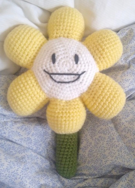 Plush white yarn Plush yellow yarn Plush green yarn Regular black yarn Sewing needle Stuffing