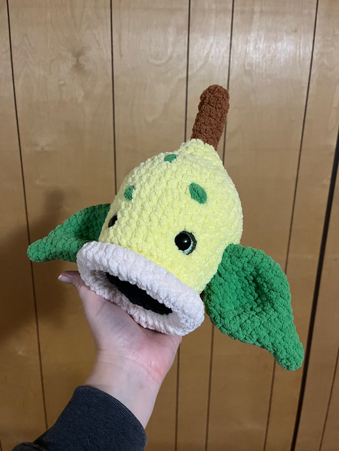 Let's make a Flytrap Flower Plush! While not a beginner pattern, this plush is on the easier end of being an intermediate project. Note that if you use different yarns, the hook and notion sizes will also need to change.