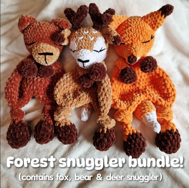 Cutest forest snugglers, in this bundle you will get the deer, fox and bear snugglers