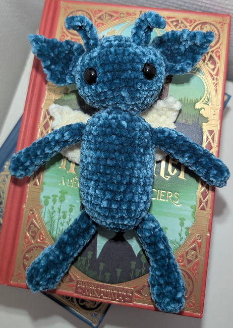 Ce mignon amigurumi mesure environ 78 cm et présente une tête ronde, des oreilles pointues, de petites antennes et des ailes délicates. Il apportera une touche de magie à votre collection ou pourra devenir un adorable cadeau fait main.