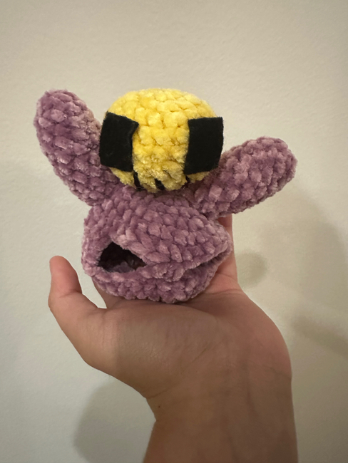 this pattern is unfortunately not no-sew, but you only have to sew on two things and weave in a few ends. It also requires the use of felt/embroidered eyes.