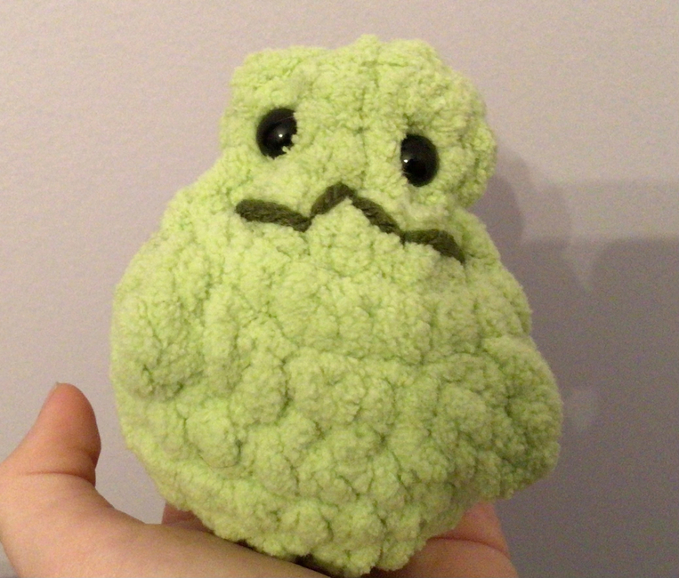 All of my patterns so far! A cute small frog squishy, a dashing leggy lizard, and a banner to accessorize your room! All of these patterns are super beginner friendly!
