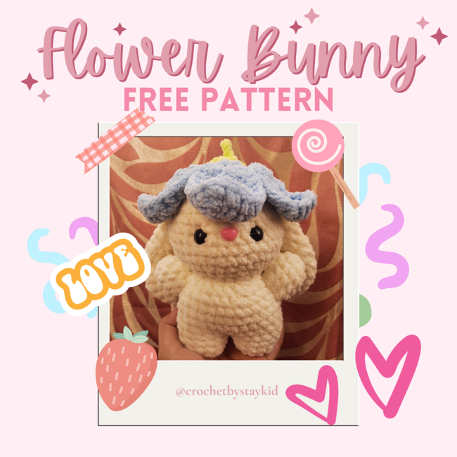 Free Flower Bunny Pattern is an Intermediate Crochet pattern designed by crochetbystaykid for making an Amigurumi. This pattern is intended for personal use only. Do NOT copy, repost or sell the pattern. You may sell the finished product but credit me as the creator (@crochetbystaykid on instagram). Thank you and I hope you enjoy making the flower bunny!