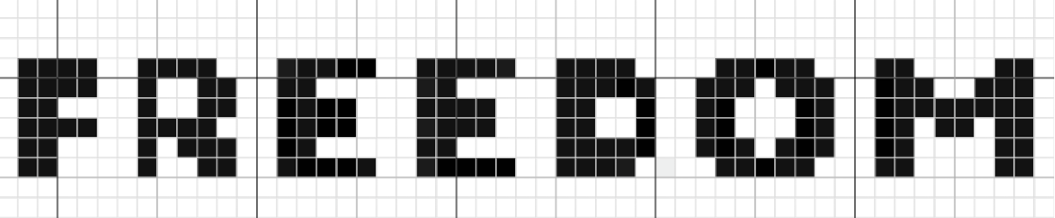 This crochet grid pattern spells FREEDOM in bold, block-style letters inspired by Charlie Kirk's shirt. It's designed for tapestry crochet, or any patriotic project where you want to make a strong statement of faith and freedom through your craft.