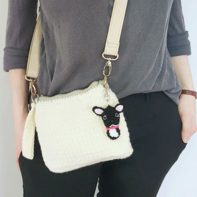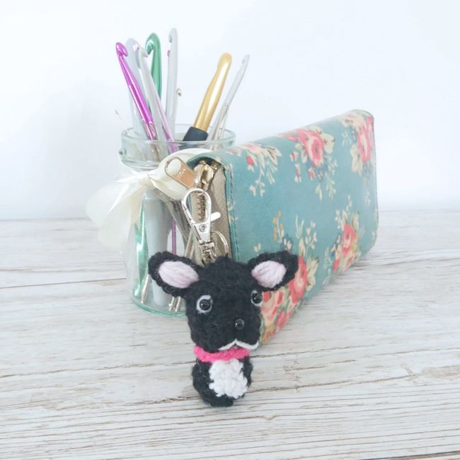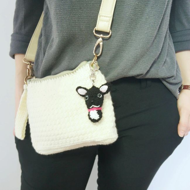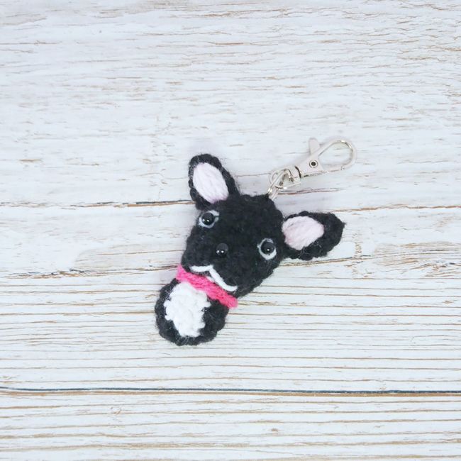 This is a crochet pattern for this super cute French Bulldog bag charm.