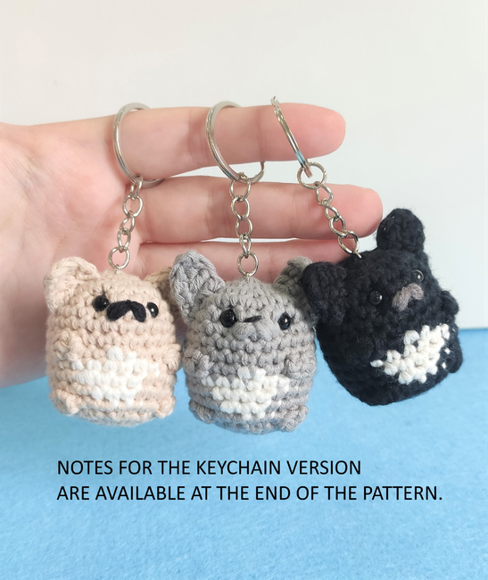 (For the keychain version, use Category 2 yarn (2# fine), a 2.5 mm hook, and 5 mm safety eyes).