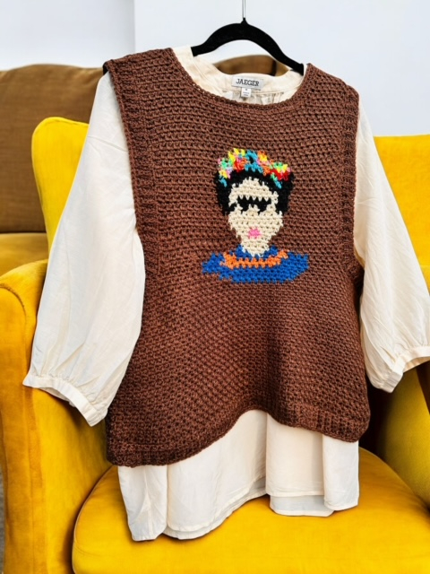 This is the pattern only for this intarsia Frida Kahlo inspired tank top