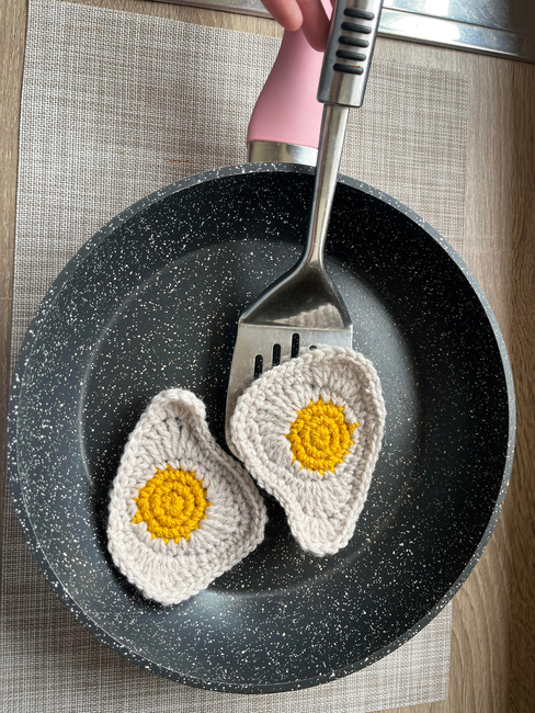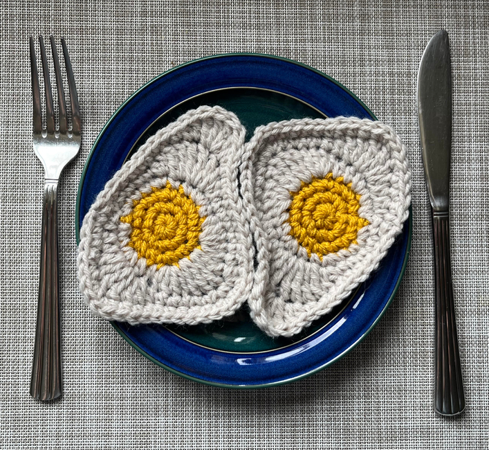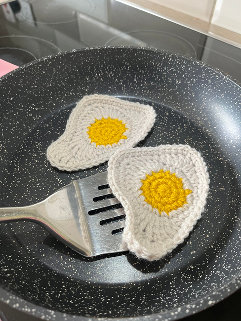 This cute and simple fried egg crochet pattern can be used on its own as a tea/coffee coaster or even used as a cute patch to sew on to spice up other patterns like clothing and blankets! This crochet coaster is perfect all year around as a handmade gift or for selling at markets!