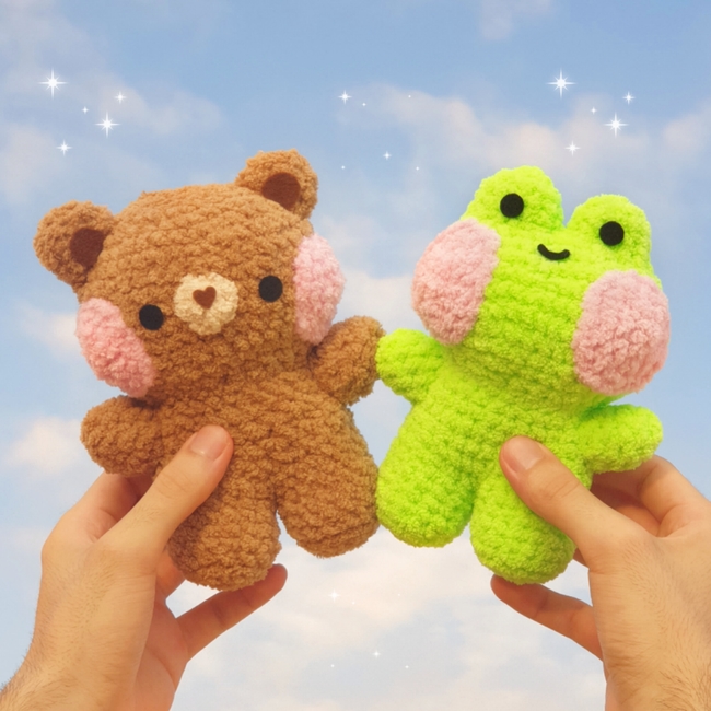 This is a 2-in-1 pattern which includes detailed instructions to help you make your own frog and bear! This pattern works up very quickly, with each not taking more than 1-2 hours to make and sew! Sewing in this pattern is relatively very simple and won't make you regret learning to crochet, even if you're a complete beginner!