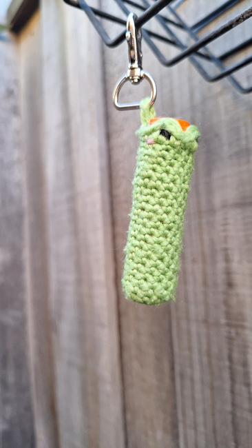 Made By Indi designed the Frog Chapstick Holder pattern. Find more of their patterns on their Ribblr shop page.