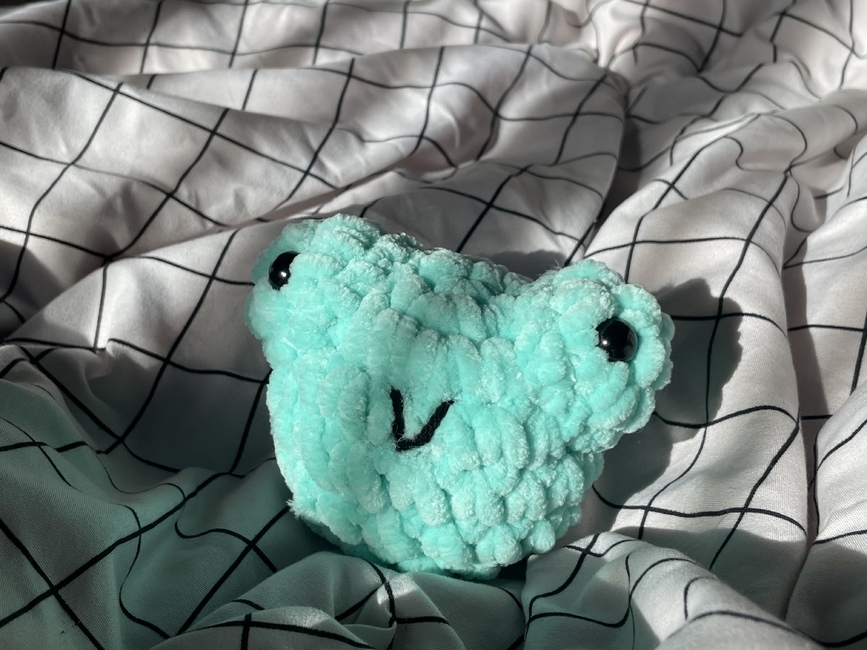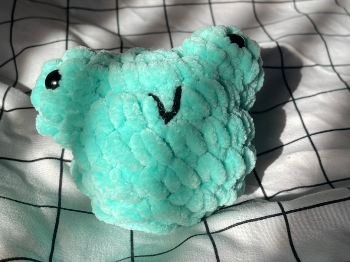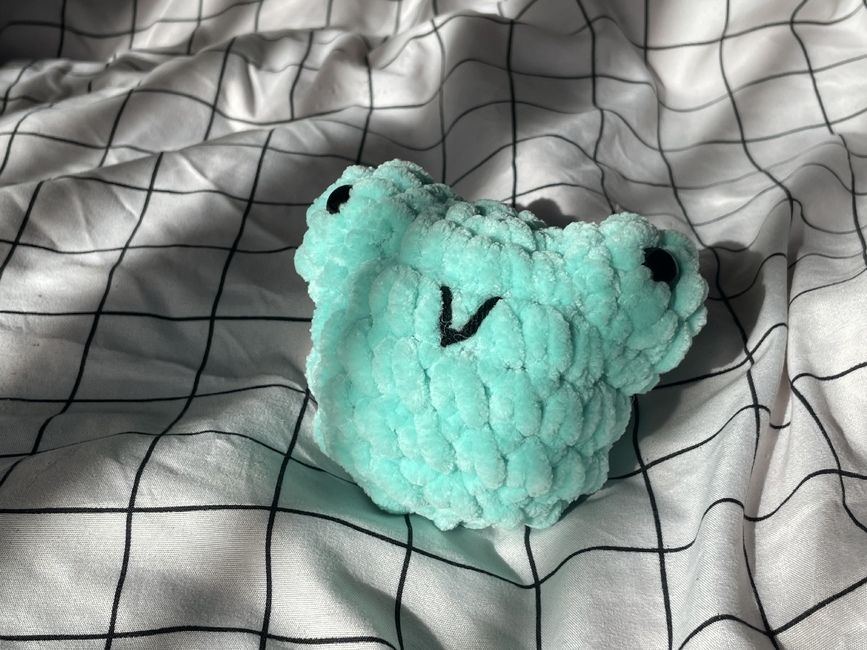 This pattern includes just the amigurumi frog head/ body (as seen in the photo). This can be any size depending on the size of yarn. The black eyes should be half the size as the green eyes, also depending on the size of yarn. This pattern is not directly towards beginners, but if they have some skill in amigurumi, it should be simple! Please use this pattern for fun, do not sell items using this pattern without my permission.