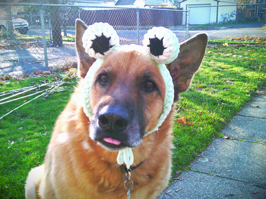 I made this pattern for my dog so he could have a headband! He absolutely hates it unless he gets treats..