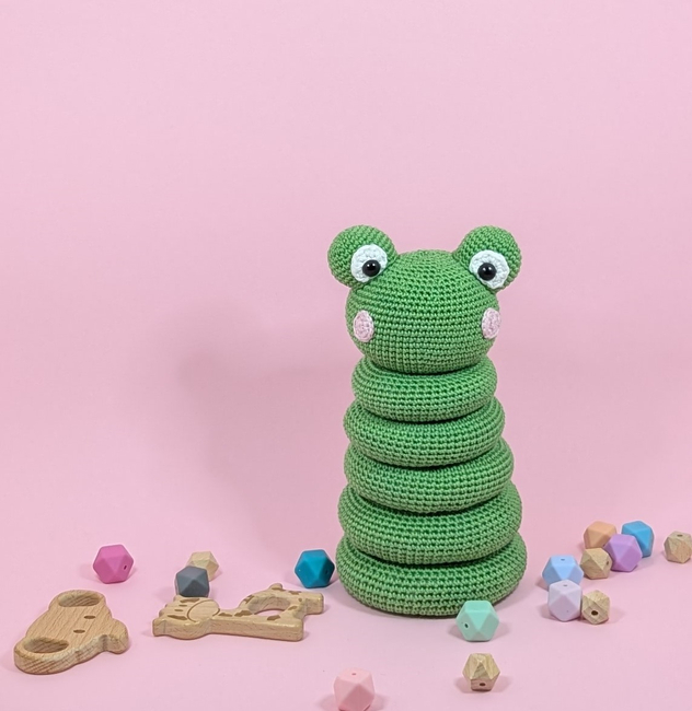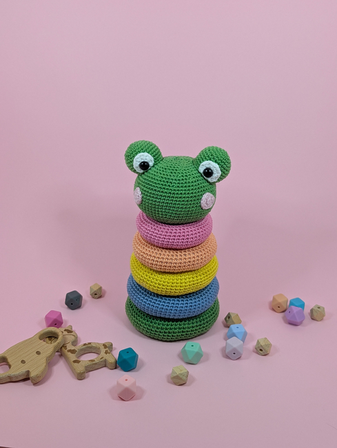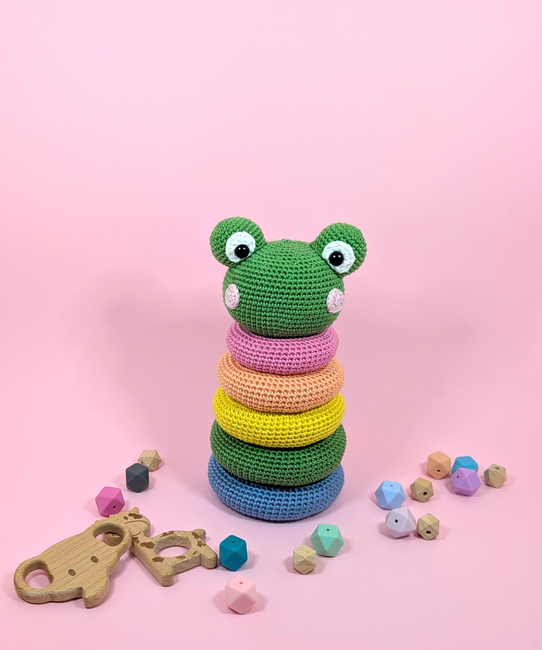 Swecraftcorner designed the Frog stacking toy pattern. Find more of their patterns on their Ribblr shop page.