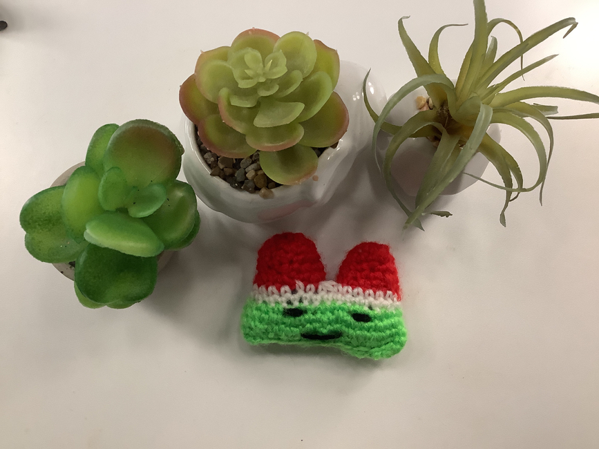 This is an intermediate froggie watermelon plushie. Sorry if this pattern is hard to understand I made it on the go. Have fun!