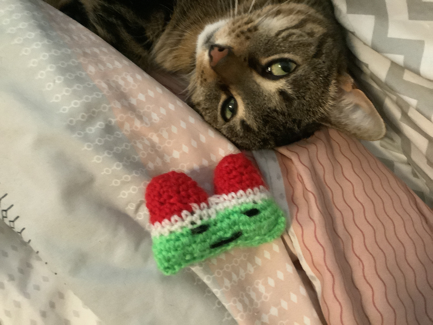 Lia’s crochet shop designed the Froggiemelon pattern. Find more of their patterns on their Ribblr shop page.