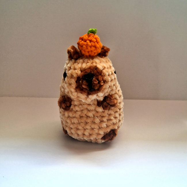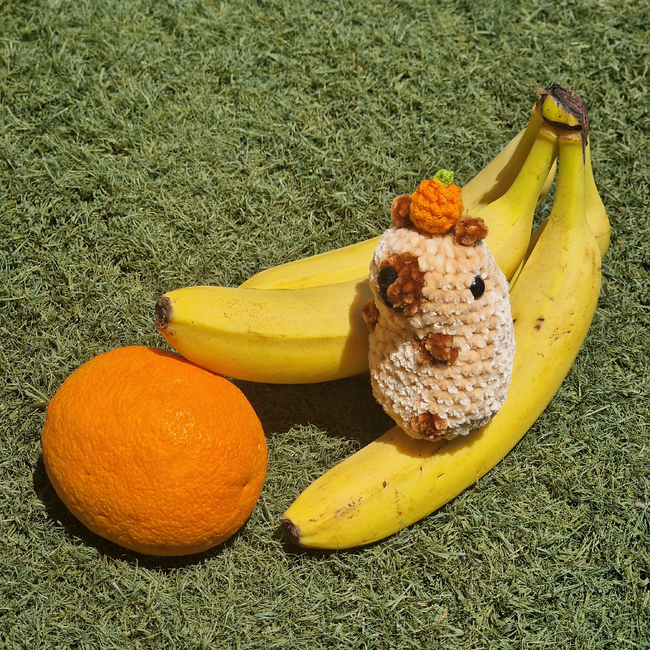 This handmade capybara plushie is serving up citrusy charm with a tiny orange perched proudly on its head. Bursting with personality and all the laid-back vibes of nature's most relaxed rodent, this fruity friend is soft, sweet, and totally huggable. With its gentle bean-like features and cozy yarn body, it's the perfect pal for lazy afternoons, sunny shelf décor, or anyone who appreciates a plushie with a little zest. Whether you're a capybara lover or just adore quirky, handmade cuteness, this capybara is ripe for the cuddling.