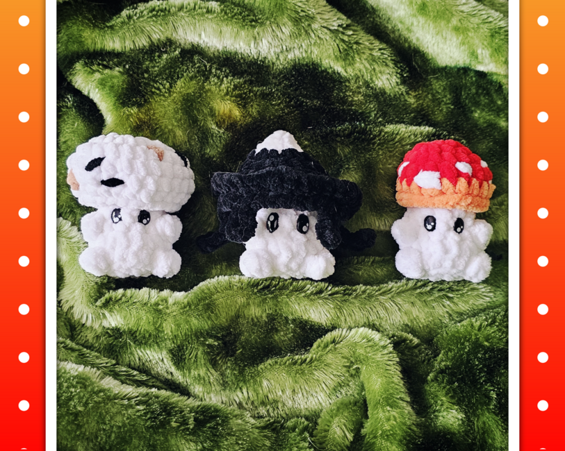 Meet this fun little trio of guys, Amanita, Button, and Inky.