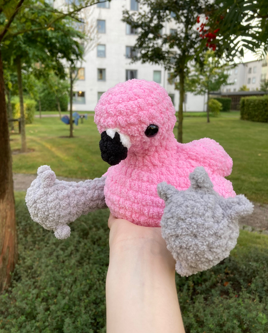 Look there in the lake, it's a flamingo! This cute little flamingo is running towards us! Its legs are kinda longer, but don't worry, it's for chasing you around town, hoping to get a sandwich (Which is also why it's quite chonky too).