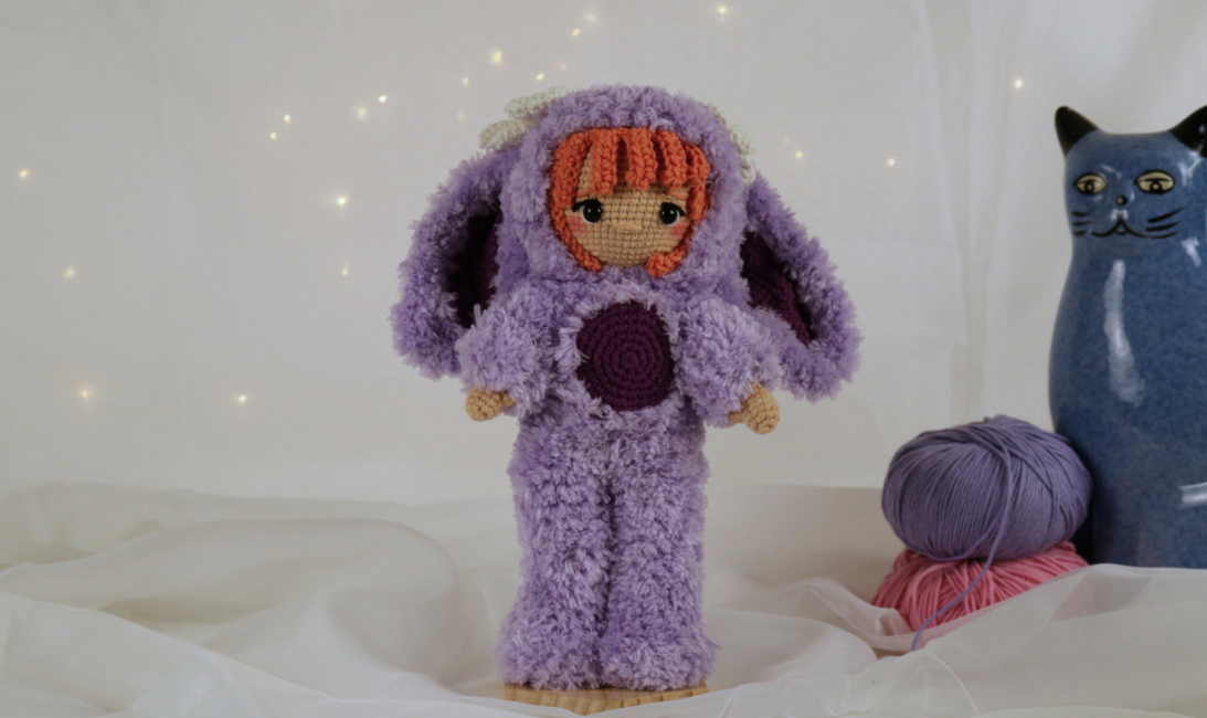 - Main yarn is fine/sport weight so using a bulkier yarn will require a larger hook and larger safety eyes