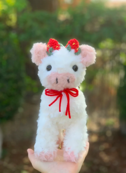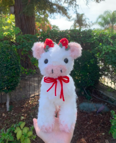 A fuzzy strawberry themed crochet cow for your collection! Made with fur yarn, it is soft and cuddly - and looks anything but crocheted!