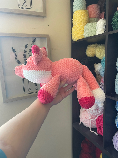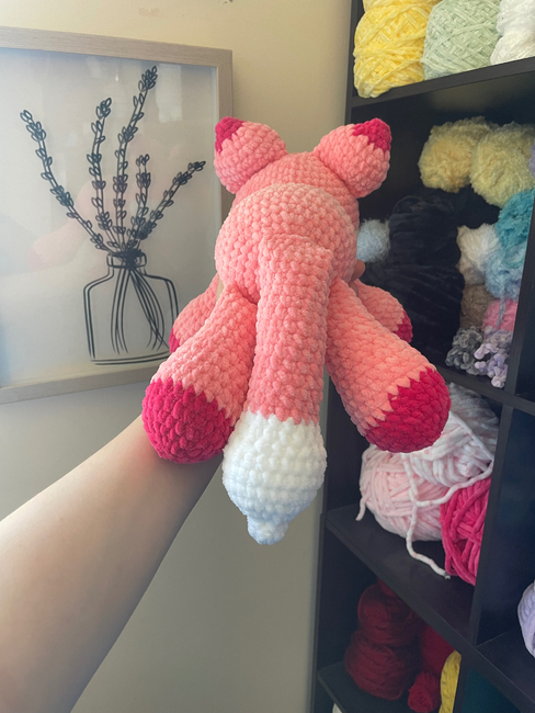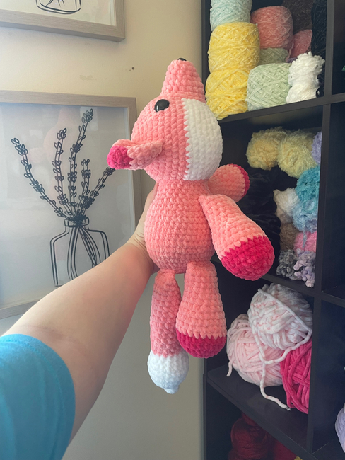 In this pattern, the body is no sew. All you will have to sew is the body, nose, and ears to the head. The tail and all the legs are crocheted into the body.