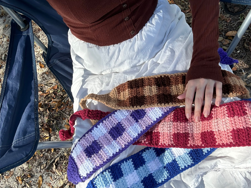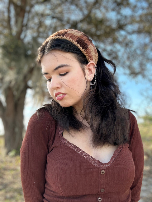 Dionysus Crochet designed the Garden Party Headband pattern. Find more of their patterns on their Ribblr shop page.