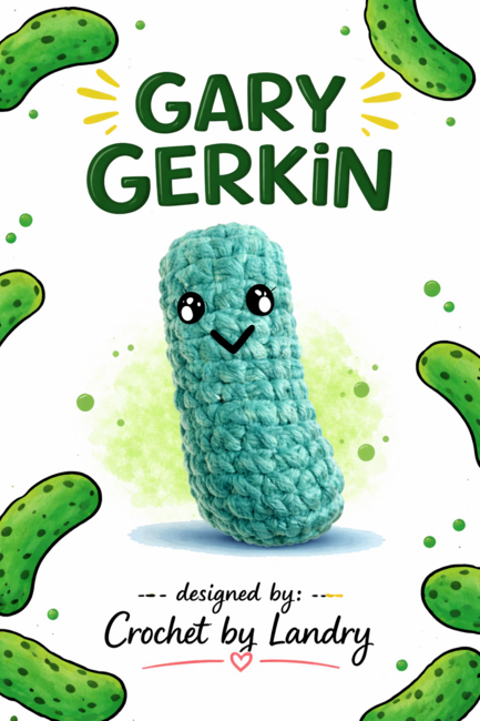 Gary Gerkin is an Intermediate Crochet pattern designed by Crochet by Landry for making an Amigurumi. Gary Gerkin is a fun loving pickle friend that can be used for emotional support if needed, or a just because gift. Or because you love pickles!!