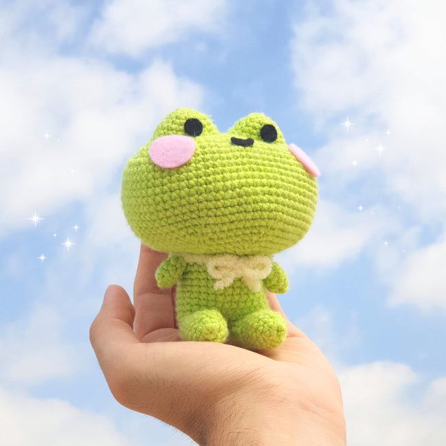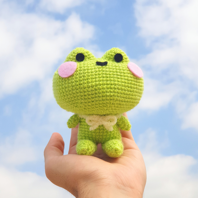 This pattern includes detailed instructions to make a sitting frog amigurumi.