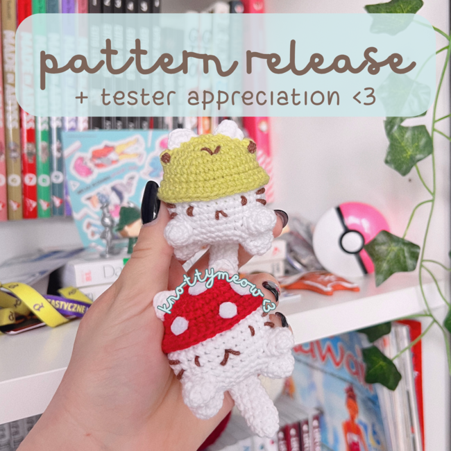 these patterns are made and written by me, knottymeow. any sharing or reselling the pattern is prohibited. you may sell the finish product in small quantities but with a condition of crediting my shop.