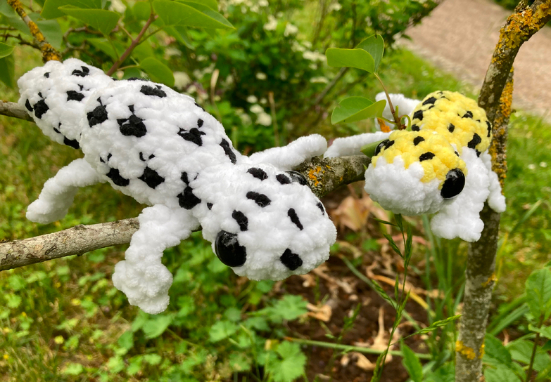 This pattern is made pretty much for beginners who are comfortable with color changing and a bit of sewing. This include both of the leopard geckos I've created a pattern to, but I hope you like them equally, as both took some time to make!
