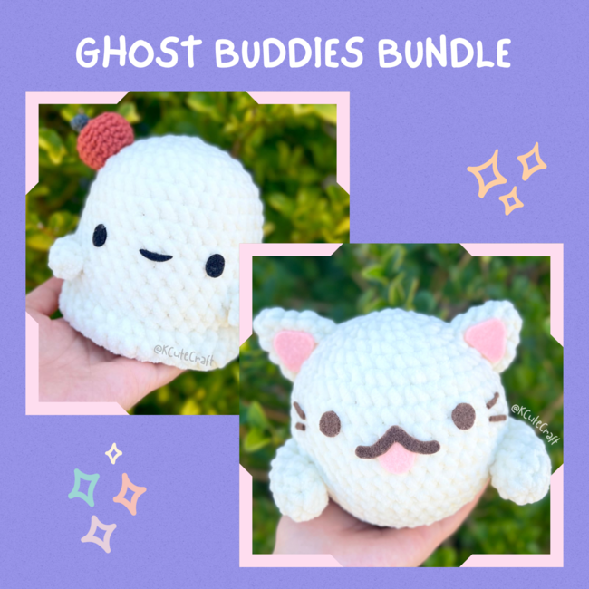 These handmade ghost amigurumi are simply adorable! They're perfect for adding some spookiness to your decor. The bundle includes two ghosts of different types, each with its own unique charm. One ghost has an adorable pumpkin, while the other is a round-shaped kitty. The amigurumi are made from high-quality materials that are soft and cuddly, making them great companions for kids and adults. Whether you want to add them to your Halloween decorations or simply add them to your collection of toys, these ghost amigurumi are sure to brighten up your day.